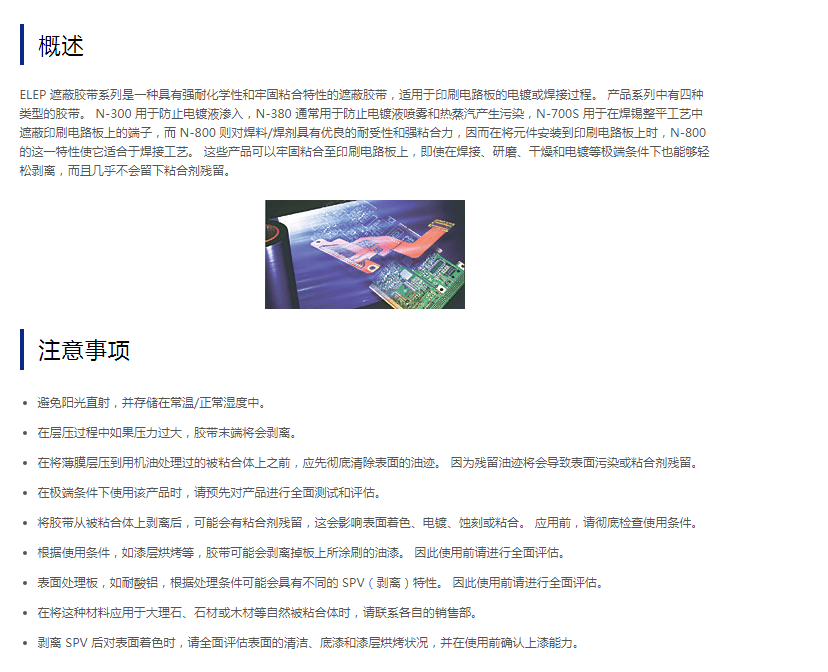 用于印刷电路板的 ELEP 遮蔽胶带系列